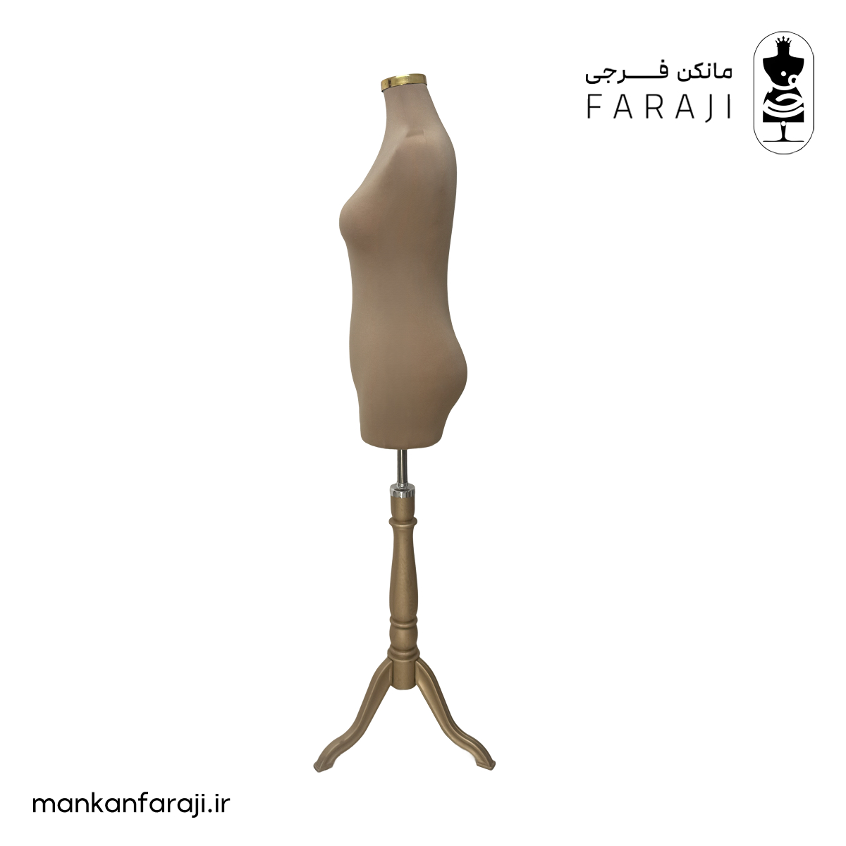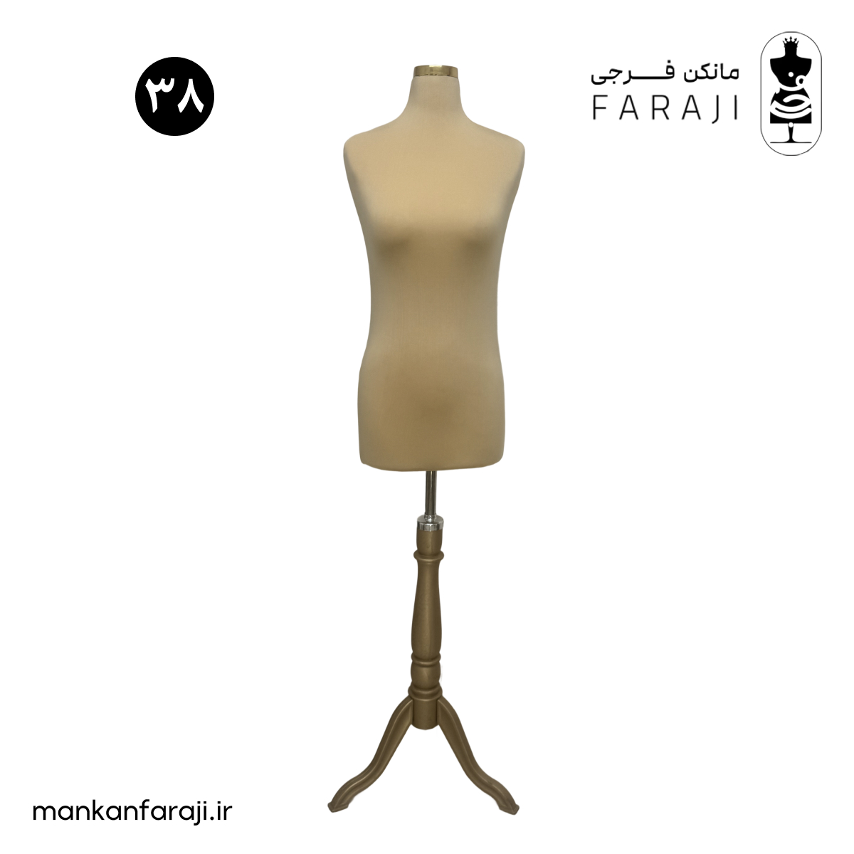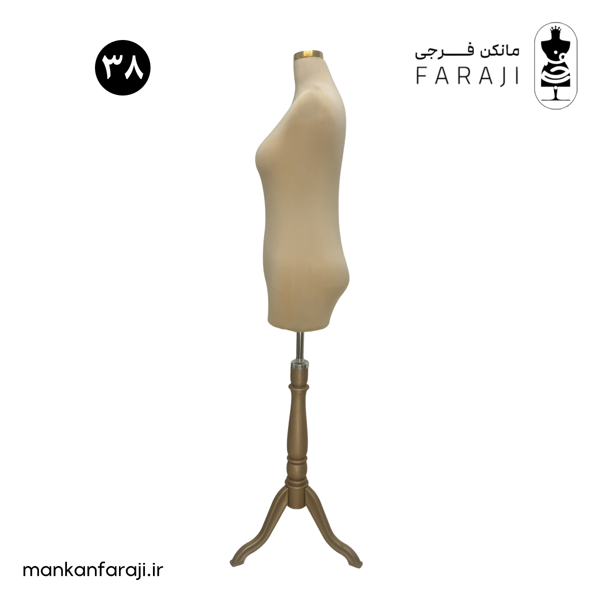 - فرم بدنه: مانکن سوزن خور زنانه نیم تنه با قالب سایز 38 دارای سینه و باسن است.