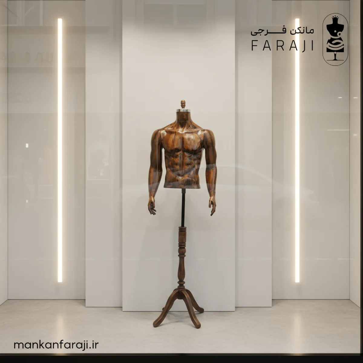 ویژگی های مانکن مردانه فایبرگلاس نیم تنه دست دار طرح چوب کد 116